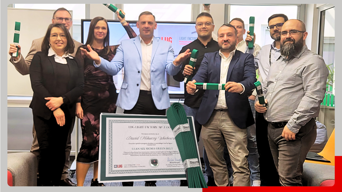 Dawid, Adrian, Artur, Valentyn, Michał, Karolina, Joanna, Rafał – gratulujeMy uzyskania certyfikatu Green Belt. Wasza determinacja w poszukiwaniu doskonałości operacyjnej jest inspirująca.